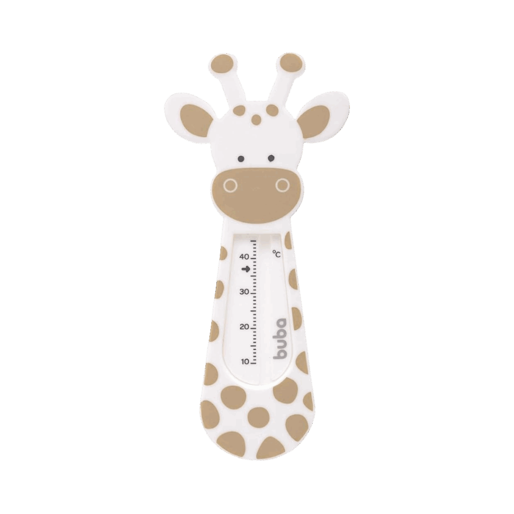 Ideal para famílias com bebês, o Termômetro Buba Girafinha Bege é projetado para medir a temperatura da água do banho. Com um design lúdico em formato de girafa, é seguro, livre de mercúrio e utiliza álcool colorido para medições precisas entre 10°C e 36°C.